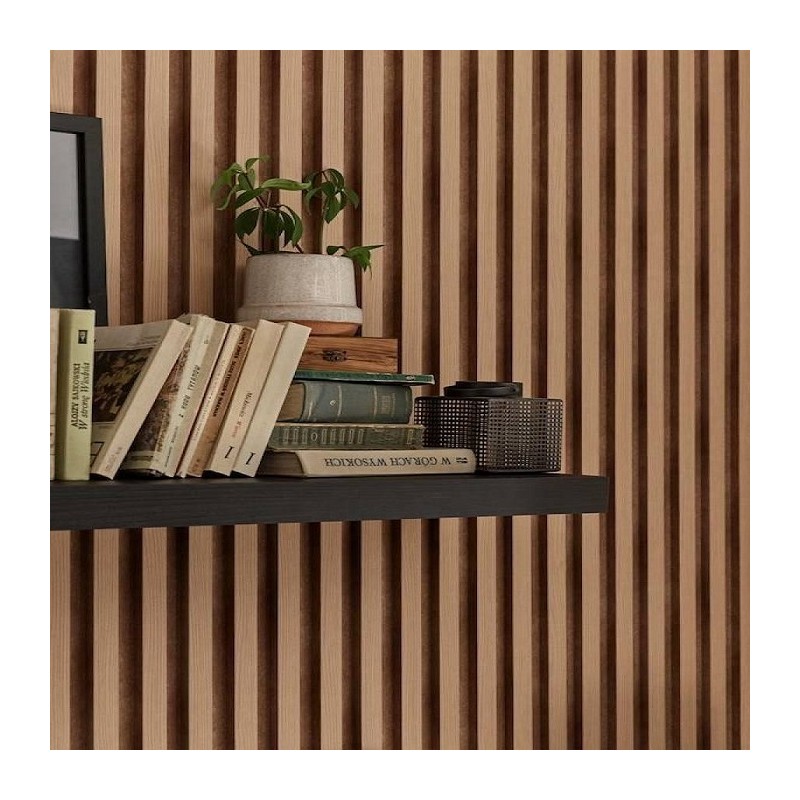 Panele lamelowe Linerio S-Line Natural sprawiają, że pomieszczenie wydaje się bardziej przytulne, a zamontowane na całej szerokości optycznie powiększają przestrzeń. Pomagają wyciszyć przestrzeń eliminując pogłosy we wnętrzu Cienkie lamele w kolorze jasnego drewna można zastosować również w przedpokoju czy kuchni lub w w pomieszczeniach o zwiększonej wilgotności. Powstały z nowoczesnego materiału, dzięki czemu są trwałe i lekkie. Są odporne na zarysowania.