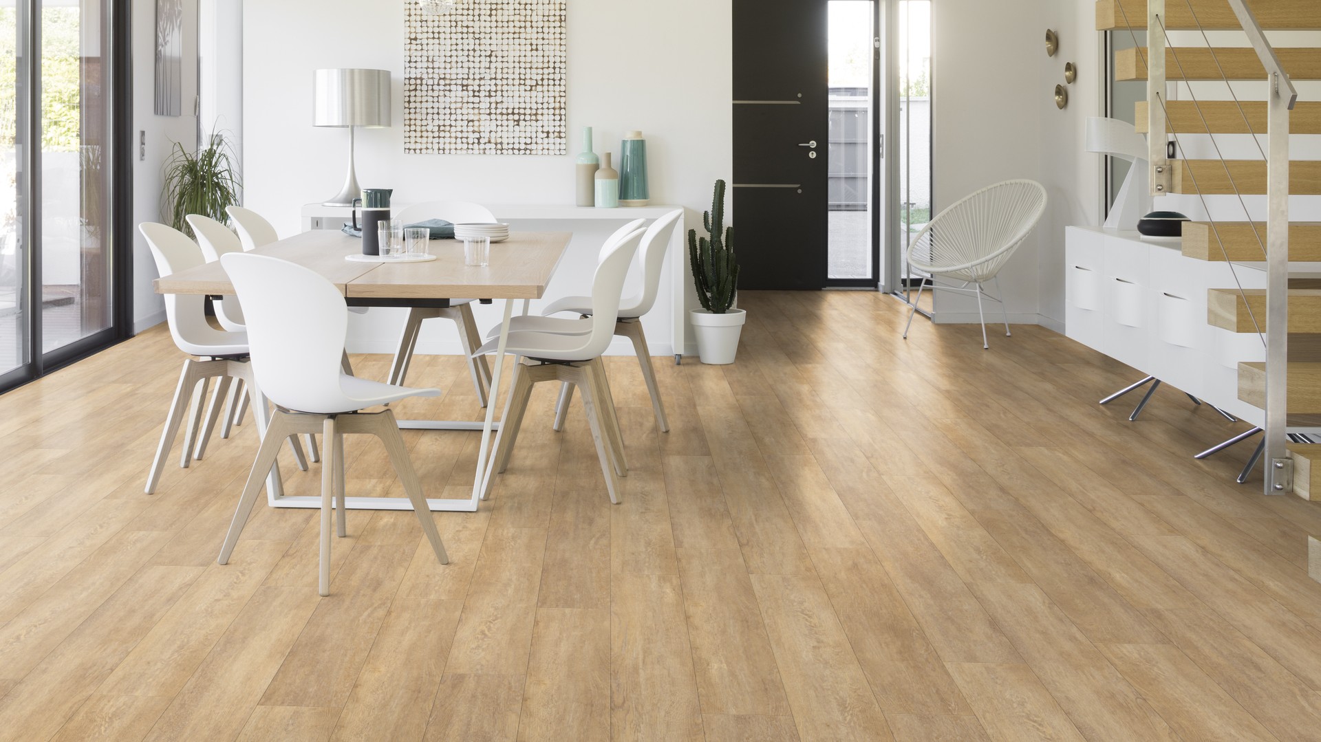 CREATION 55 RIGID ACOUSTIC to podłogi winylowe z zintegrowanym podkładem, sztywne z mocowaniem na zamek i warstwą izolacji akustycznej, antyelektrostatyczne, w grupie ścieralności T, dostępne w formacie desek (klepek) lub płytek o fazowanych krawędziach.