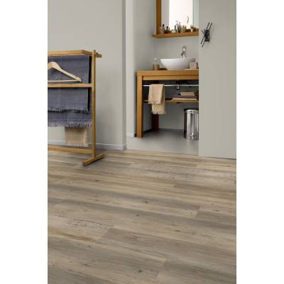 CREATION 55 RIGID ACOUSTIC to podłoga montowana na zamek kątowy, dzięki czemu jest oporna na rozjeżdżanie się, a jej montaż jest bardzo prosty. Podłoga ta ma wysoką klasę wytrzymałości użytkowej 33 / 42 (odpowiednio w warunkach usługowo-handlowych i przemysłowych).